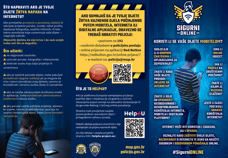 Ako postoji sumnja da je dijete žrtva kaznenog djela počinjenog putem mobitela, interneta ili digitalne aplikacije obavezno kontaktirati policiju: