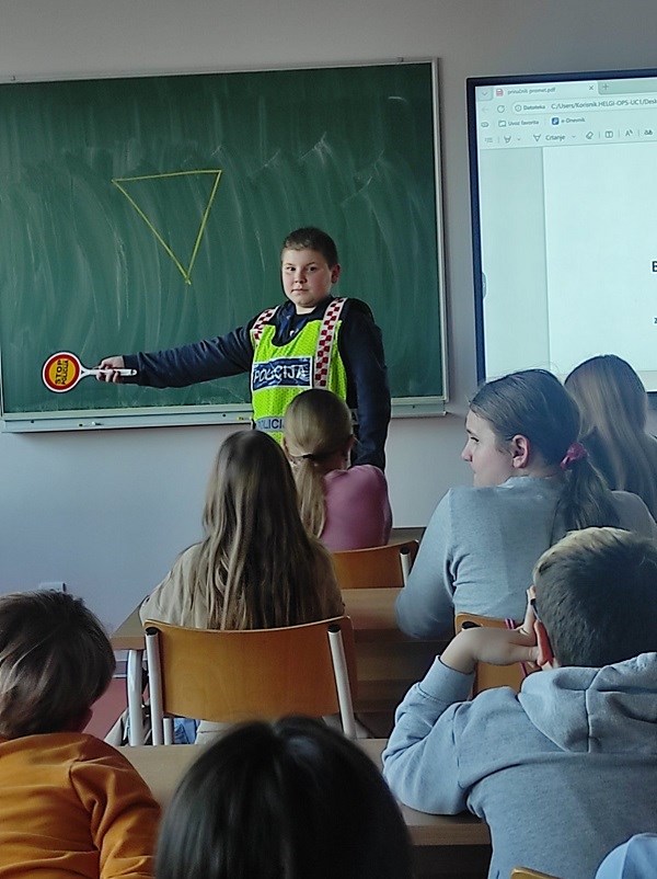 Za kraj predavanja prikazana je regulacija prometa od strane policijskog službenika. Učenicima su prezentirani osnovni položaji ruku i signali koje policajac koristi prilikom ručnog upravljanja prometom. Jedan od učenika okušao se i u ulozi policajca te uz stručnu pomoć, demonstrirao regulaciju prometa ispred svojih vršnjaka.