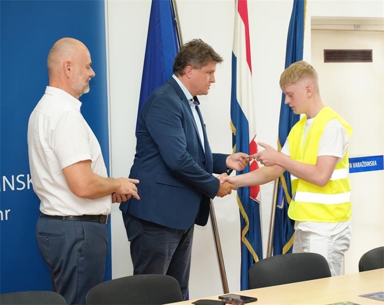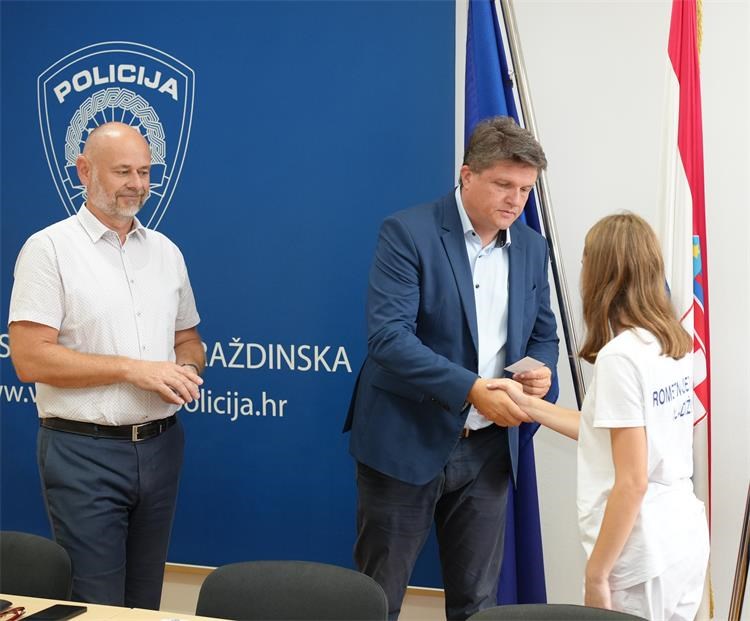 Foto: PU varaždinska i Grad VaraždinU četvrtak, 21. kolovoza, u Policijskoj upravi varaždinskoj svečano su uručene iskaznice novim pripadnicima Prometne jedinice mladeži, osposobljenih za poslove nadzora i upravljanja prometom za vrijeme održavanja manifestacije „Špancirfest 2025“.